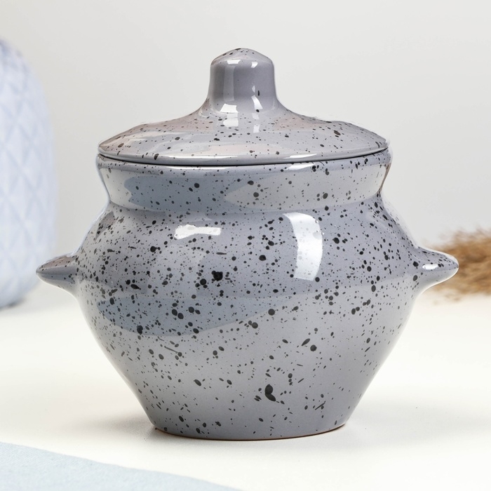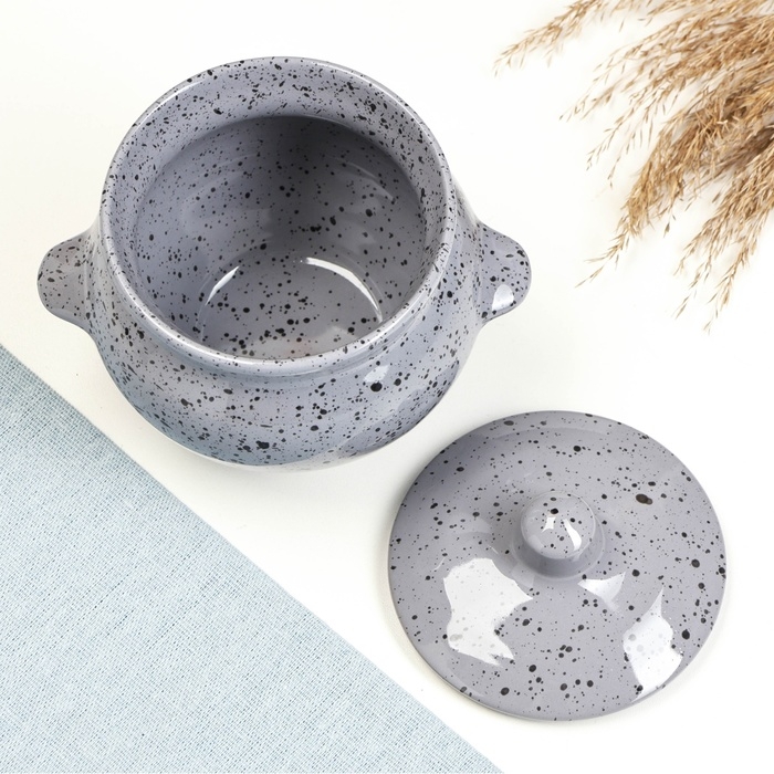 Горшок керамический для запекания №5 с ручками, 0,5л / 10,5х10см, туман