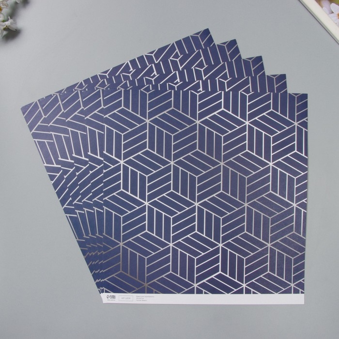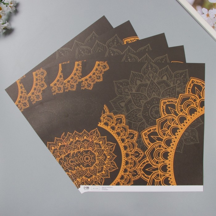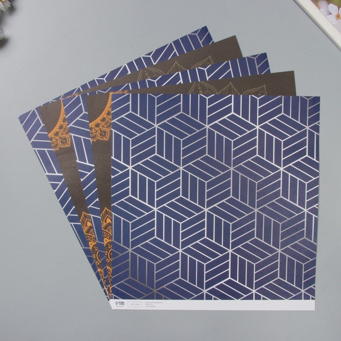 Бумага д/скрапа двусторонняя "Мехенди и геометрия серебро" 180 гр набор 5 шт 30,5х32см