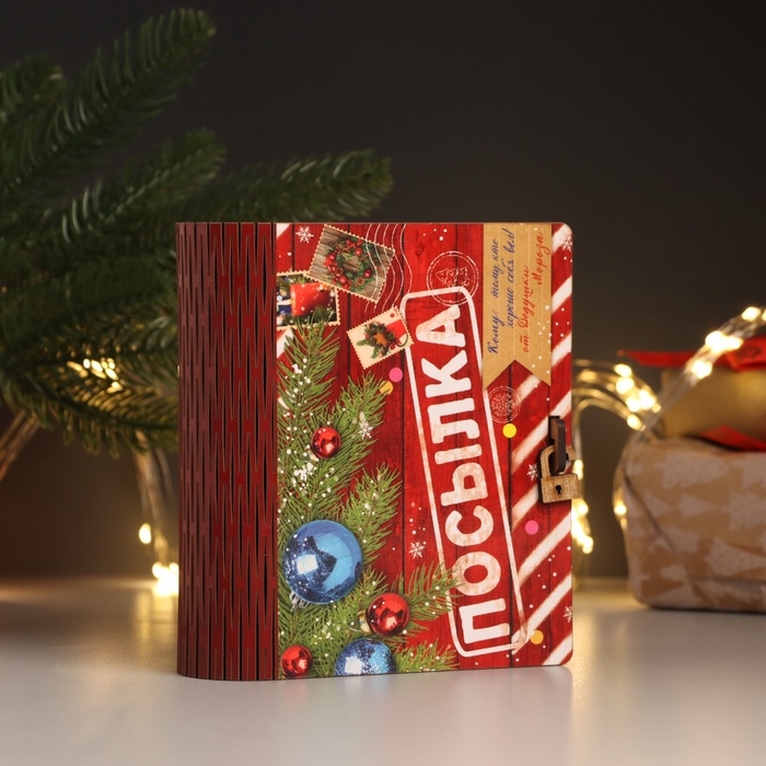 Новогодняя шкатулка-книга "Посылка" 14х12х5 см