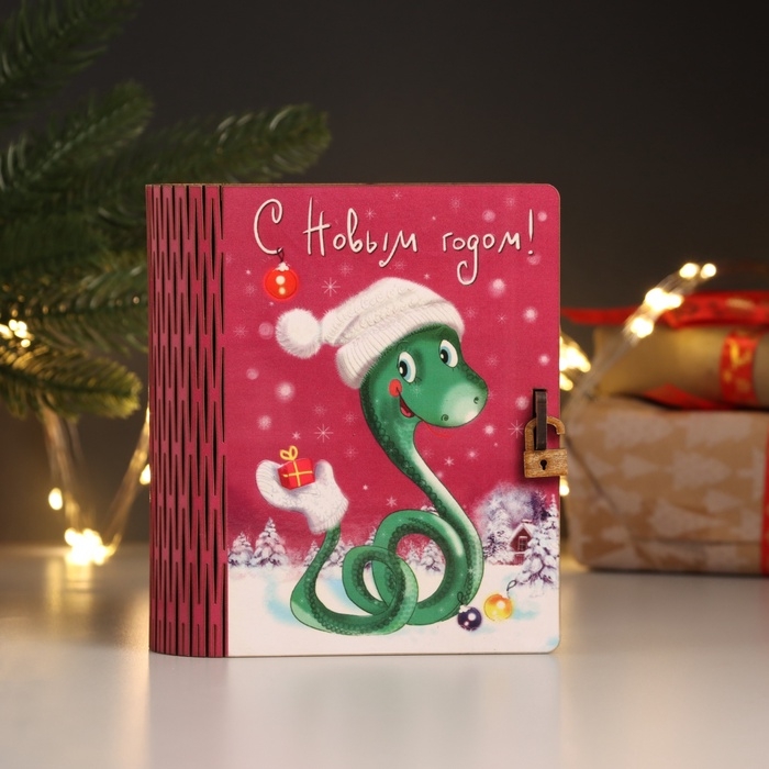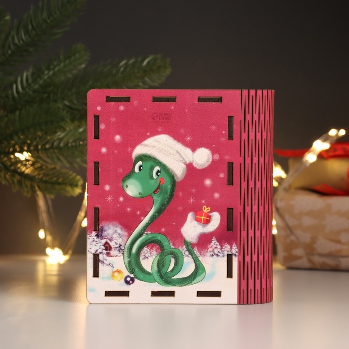 Новогодняя шкатулка-книга "Змейка с варежкой" 14х12х5 см