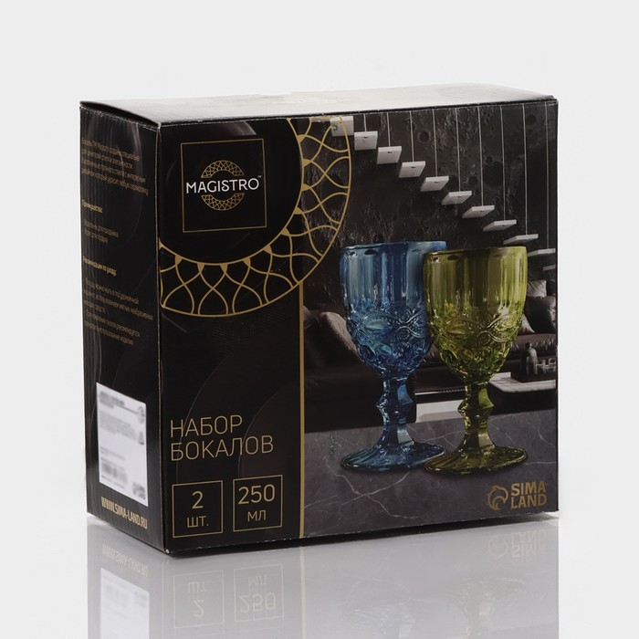 Набор бокалов для вина стеклянный Magistro «Ла-Манш», 250 мл, 8×15,5 см, 2 шт, цвет зелёный