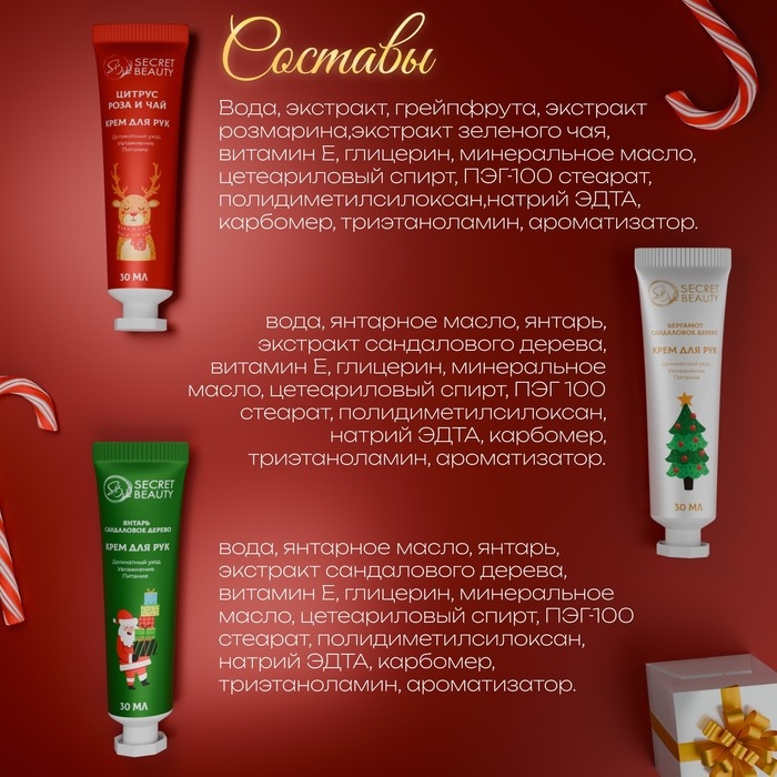 Набор кремов для рук «Новогодний» — это идеальный подарок для зимнего сезона, который сочетает в себе заботу о коже и праздничное настроение. В набор входят три тюбика крема, каждый из которых обладает уникальным ароматом, создающим атмосферу праздника. Специально разработанная формула крема обеспечивает глубокое увлажнение и питание кожи, защищая её от зимних холодов и сухости.