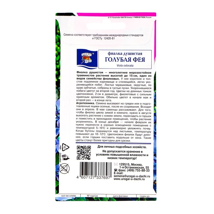 Семена цветов Фиалка душистая "ГОЛУБАЯ ФЕЯ", 0,05 гр.,