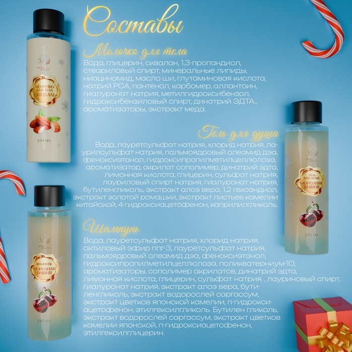 Новогодний набор — это идеальное сочетание продуктов для полноценного ухода за телом, которые дарят ощущение роскоши и заботы. Он идеально подойдёт как подарок на Новый год, который подчеркнёт ваше внимание и любовь к близким.