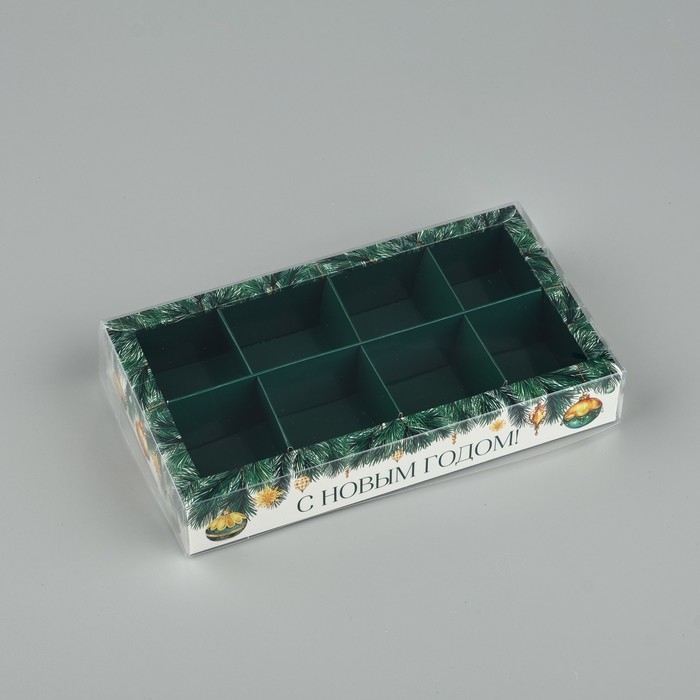 Коробка под 8 конфет с ячейками «Еловые веточки», 10 х 18.5 х 3 см, Новый год