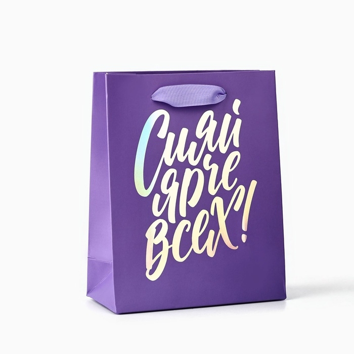 Пакет подарочный «Сияй ярче всех», голография, S 12 х 5.5 х 15 см