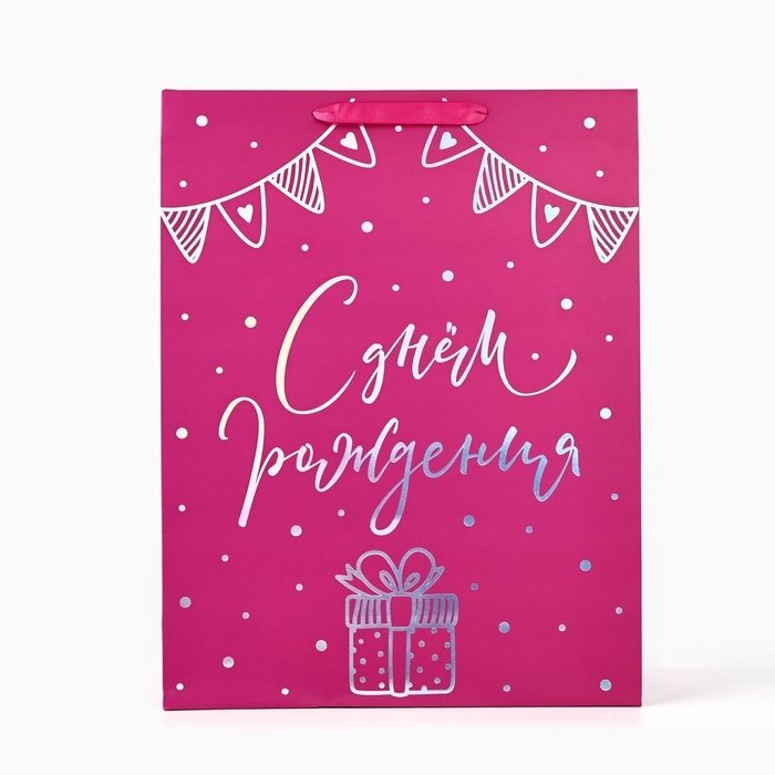 Пакет подарочный «С днём рождения», голография, L 31 х 11.5 х 40 см