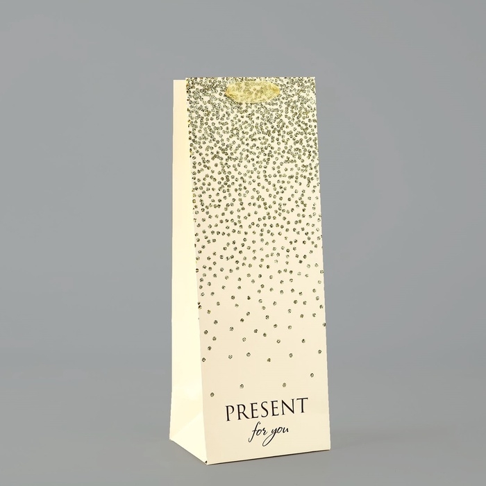 Пакет под бутылку «Подарок», глиттер, 13 х 36 х 10 см