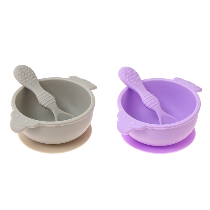 Тарелка детская на присоске с ложкой, МИКС