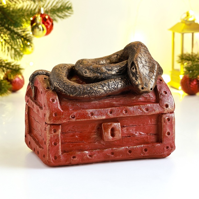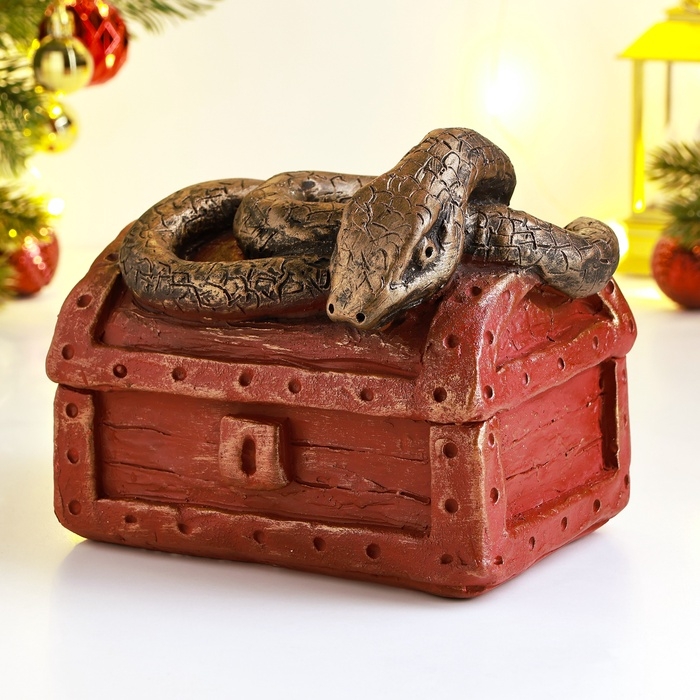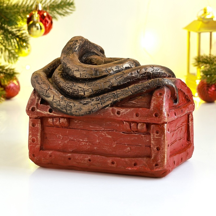 Новый год. Символ 2025. Копилка "Змея на сундуке" 16х11х14см, цветная