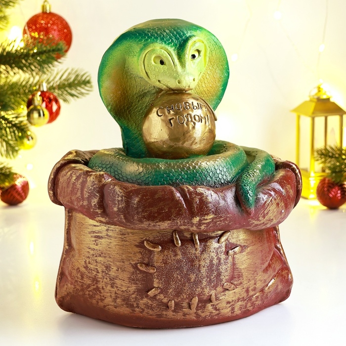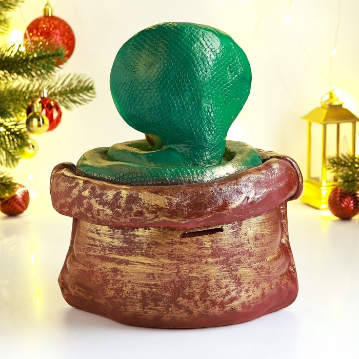 Новый год. Символ 2025. Копилка "Змея в мешке" 21х18х23см, цветная
