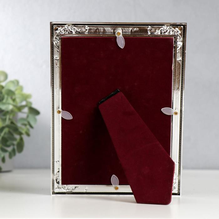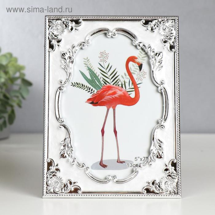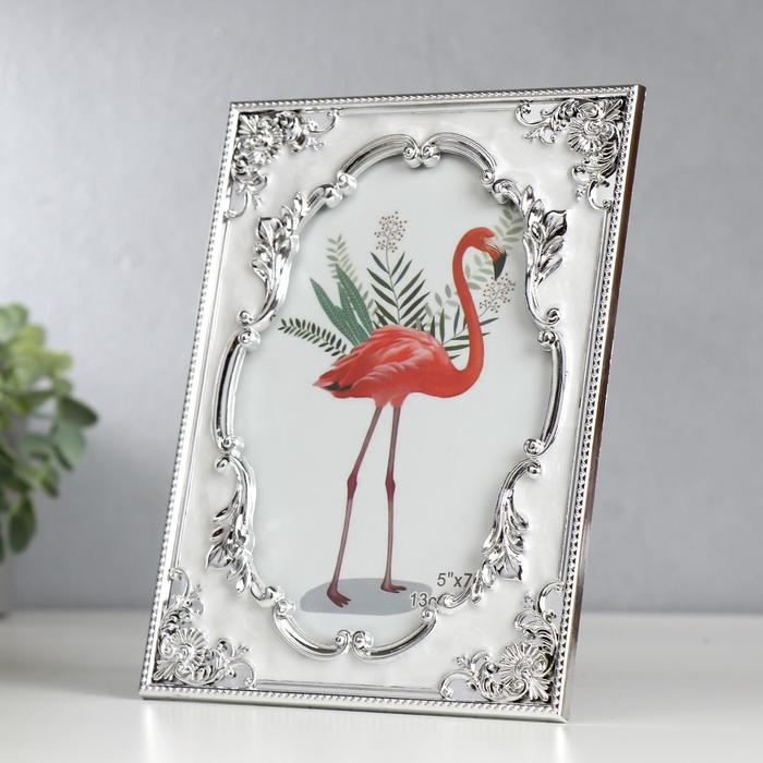 Фоторамка пластик под металл 13х18 см "Старинная рама" серебро с белым 20,7х15,2 см