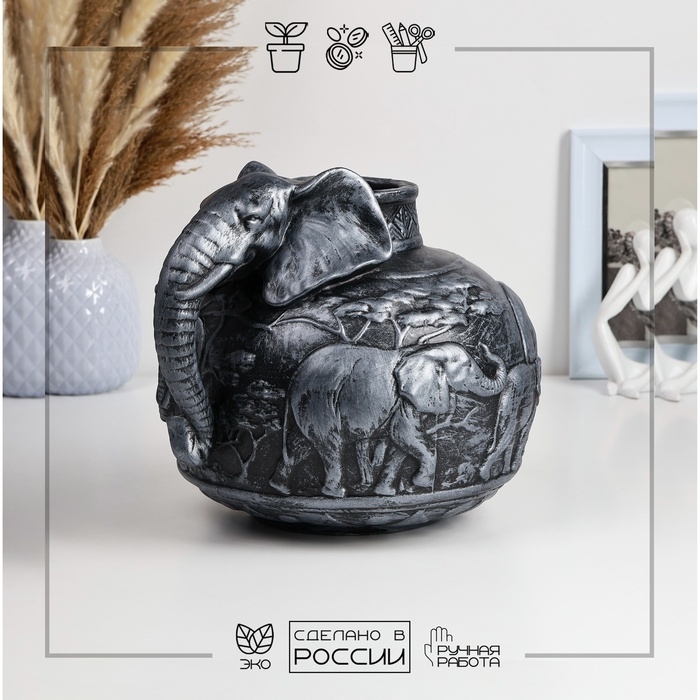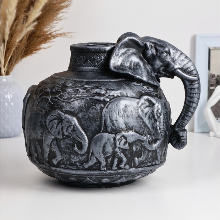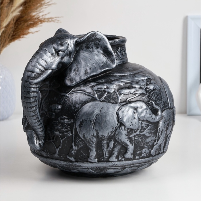 Кашпо - ваза "Африканские слоны" 22х26х22см, серебро