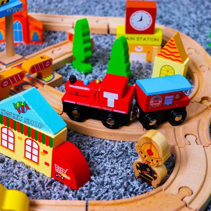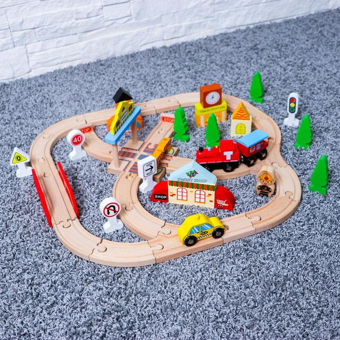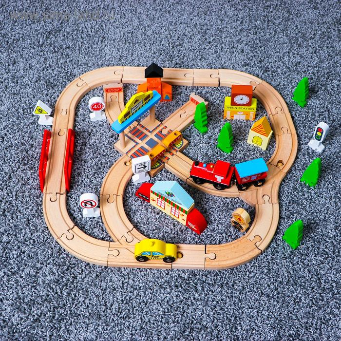 Железная дорога, 60 элементов, в собран. Виде: 48×46 см, в пластиком боксе