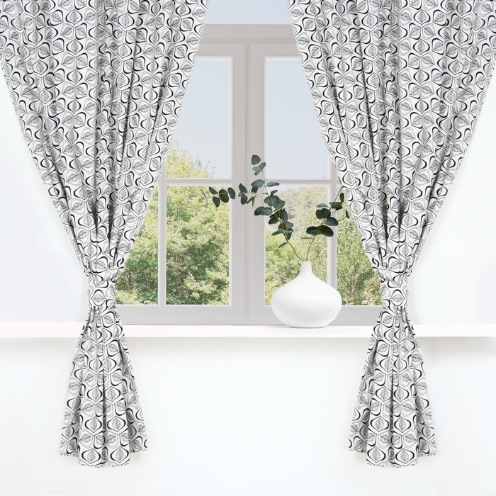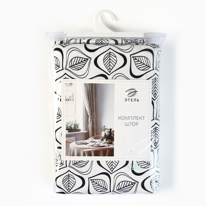 Комплект штор для кухни Этель Leaves 149х180 см - 2 шт, подхваты - 2 шт, 100% хл