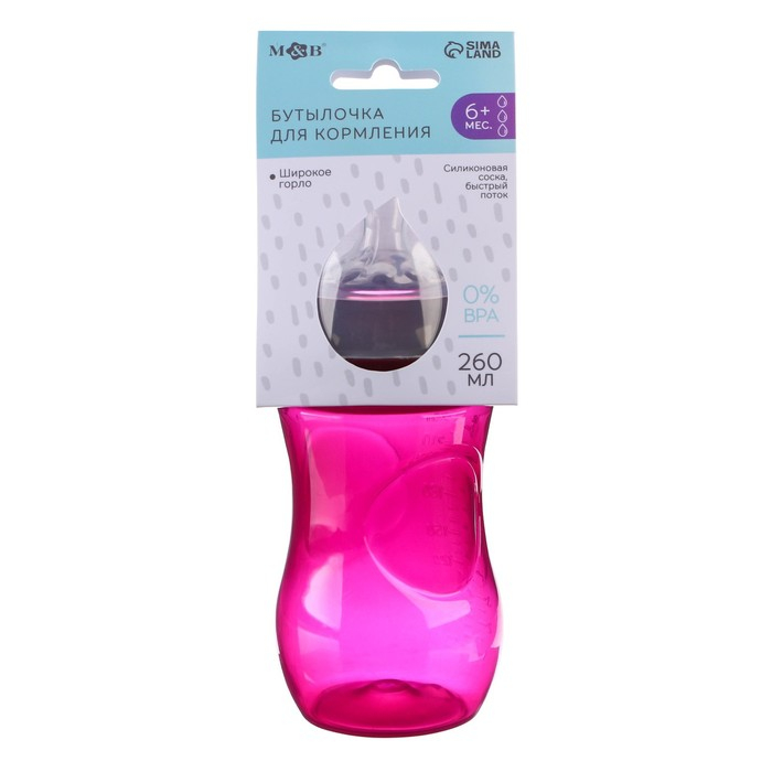 Бутылочка для кормления, Natural, 260 мл., +6мес., широкое горло 50 мм, цвет розовый