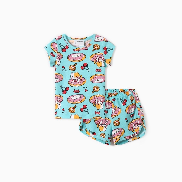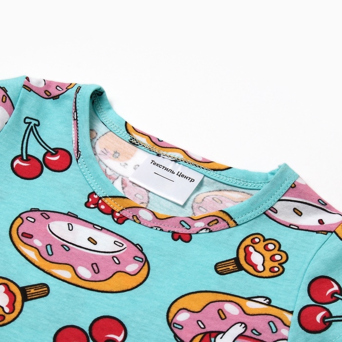 Комплект для девочки домашний (футболка/шорты) "Кошки", цвет бирюзовый, рост 110