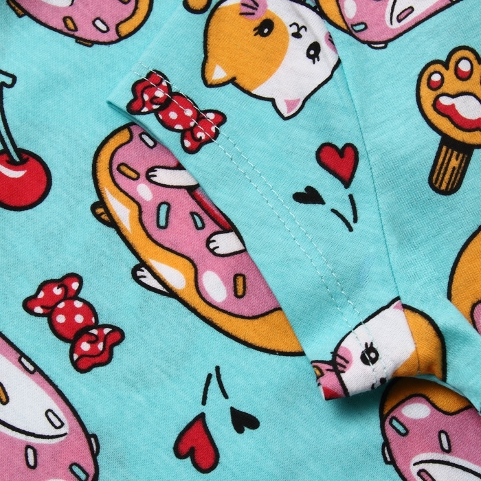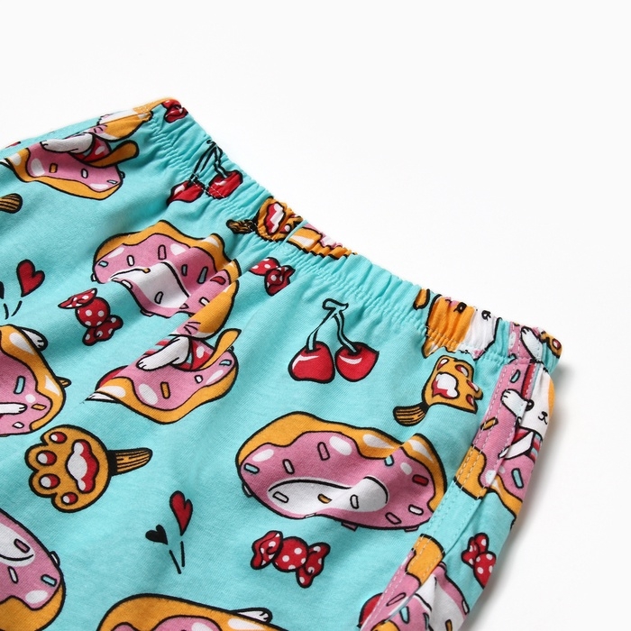 Комплект для девочки домашний (футболка/шорты) "Кошки", цвет бирюзовый, рост 116