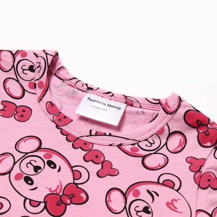 Комплект для девочки домашний (футболка/шорты) "Мишки", цвет розовый, рост 122