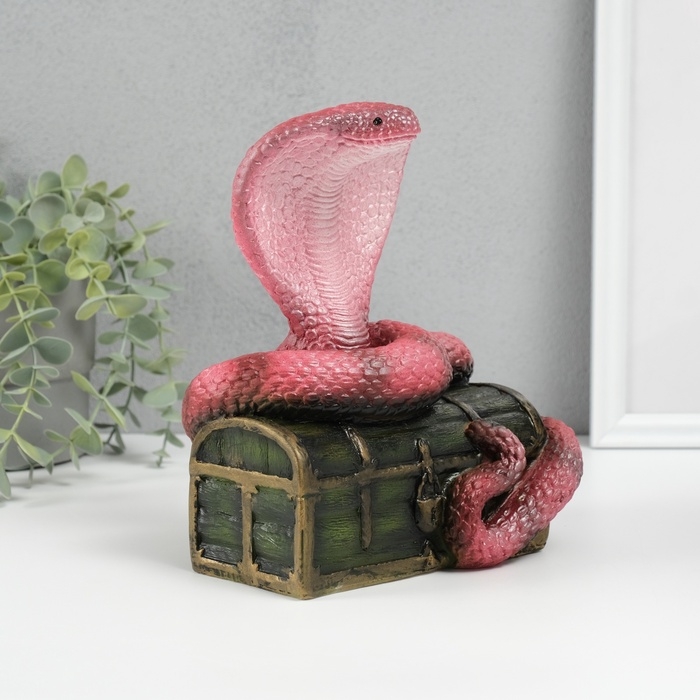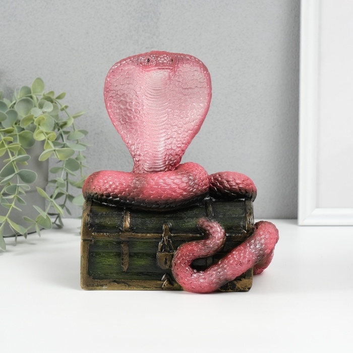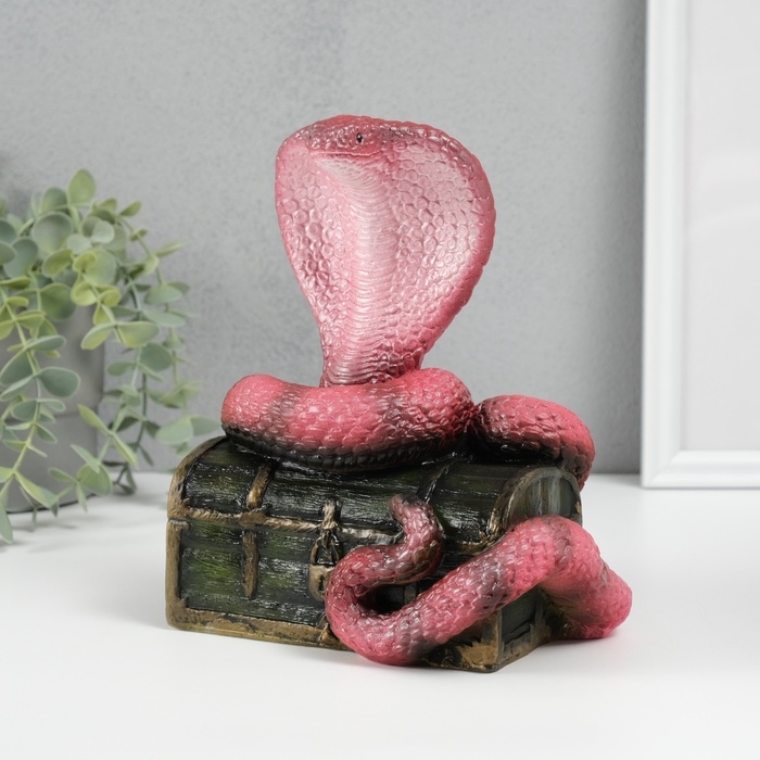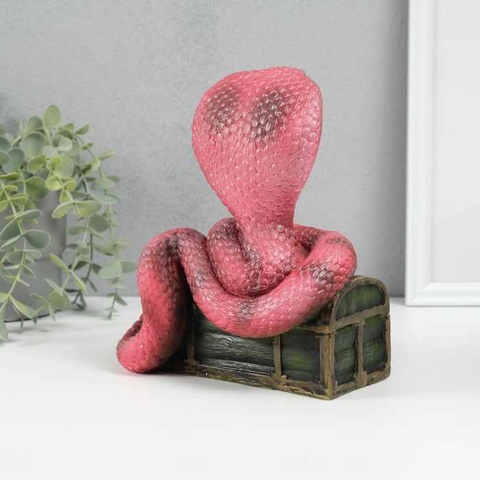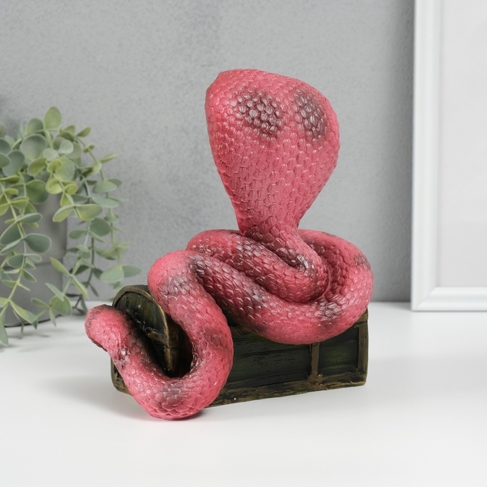 Новогодняя фигурка "Кобра на сундуке" 20 х 17 х 12 см, темно-розовый