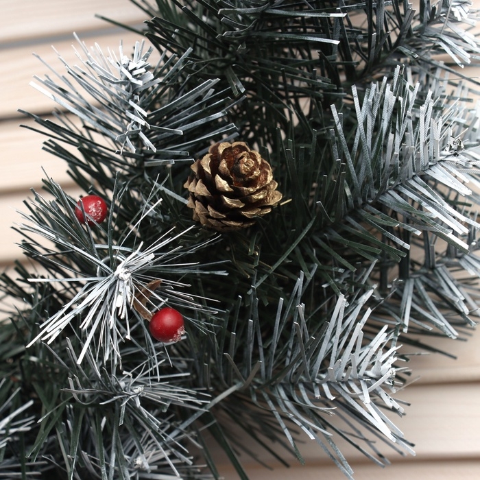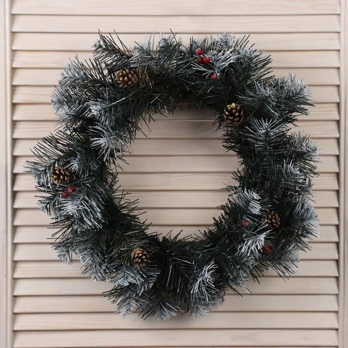Новогодний венок "Рождественский Белоснежный" шишка золото+ягода 45см