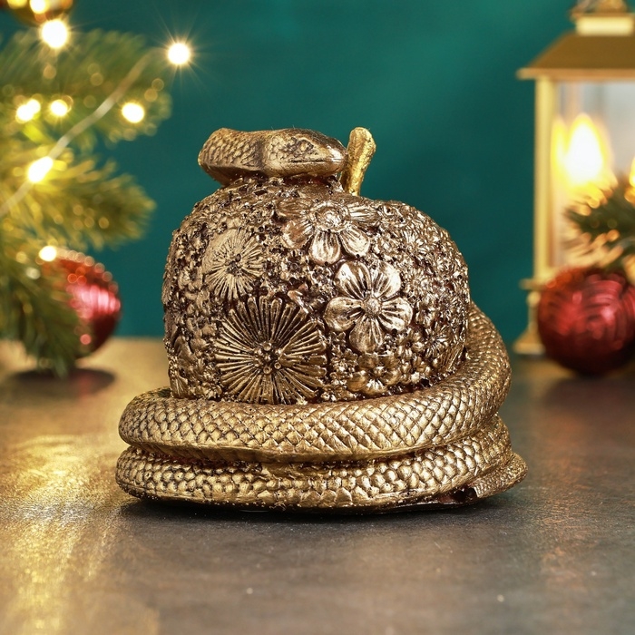 Новый год. Символ 2025. Копилка "Змея на яблоке" бронза, 10х11см