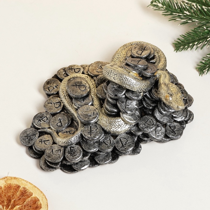 Новый год. Символ 2025. Фигура "Змея денежная" серебро, 6х17см