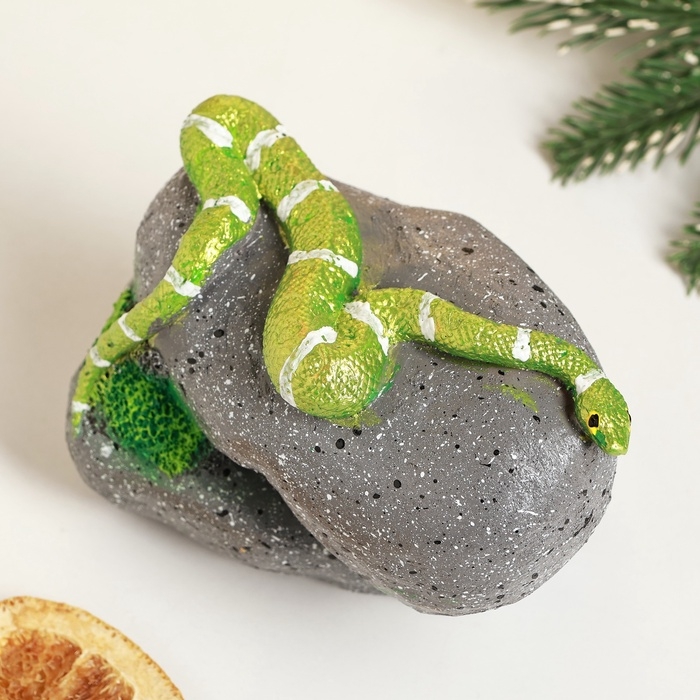 Новый год. Символ 2025. Фигура "Змея на камне" цветная, 8х11,5см