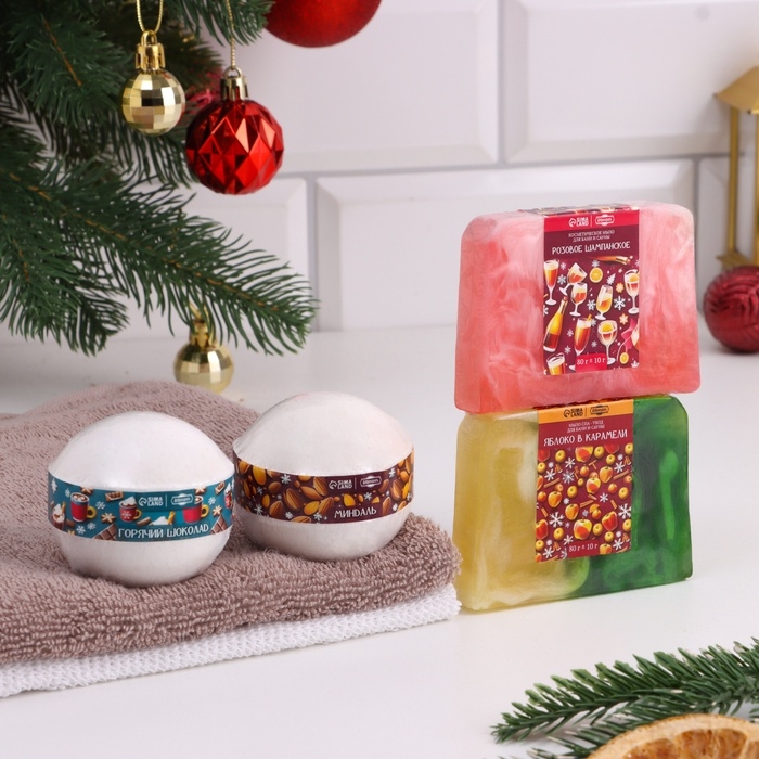 Новый год. Набор 2 бомбочки "Миндаль, Горячий шоколад" и 2 мыла "Шампанское, Яблоко" 1064326