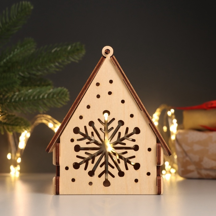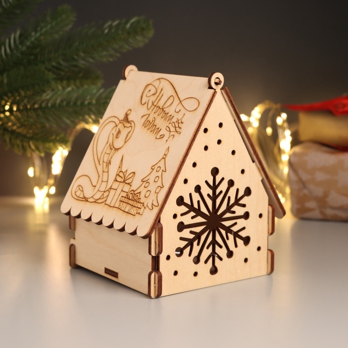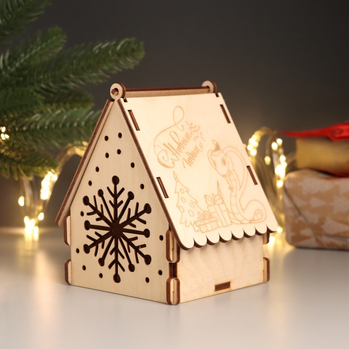 Новогодняя шкатулка-домик "Снежинка" 12х10х13,5 см (Новогодний набор 7 деталей)