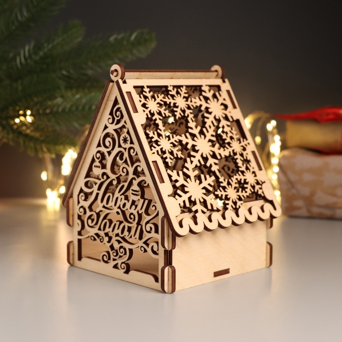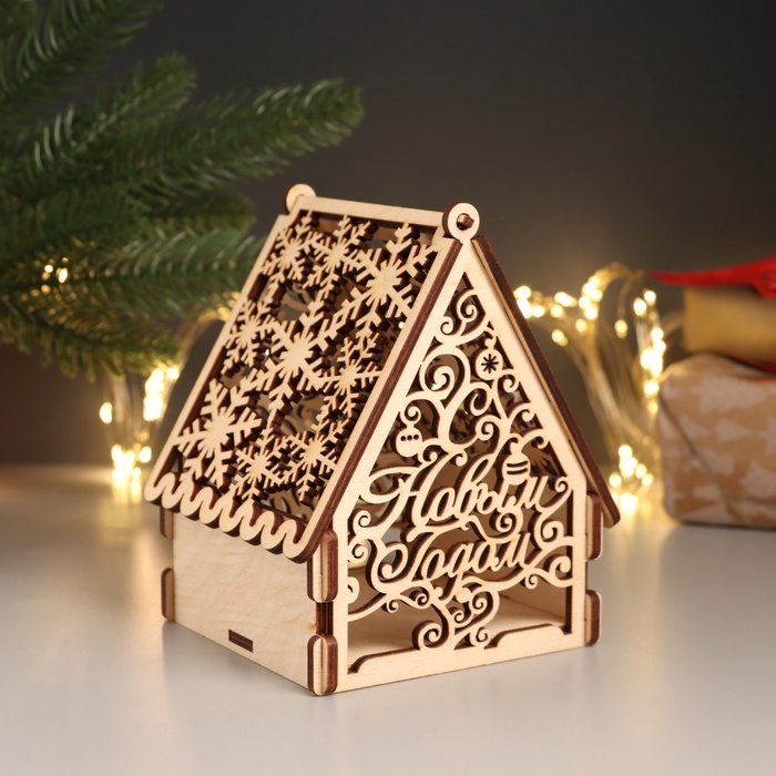 Новогодняя шкатулка-домик "С Новым годом" 12х10х13,5 см