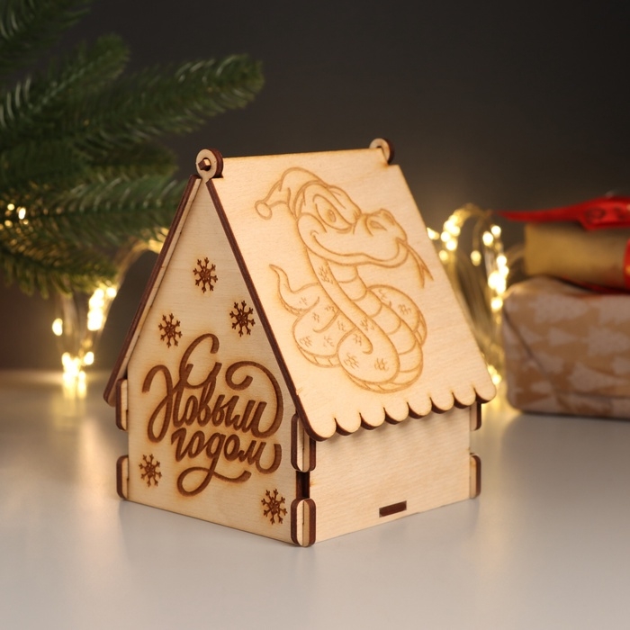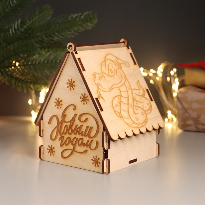 Новогодняя шкатулка-домик "Змей в шапке" 12х10х13,5 см (набор 7 деталей)