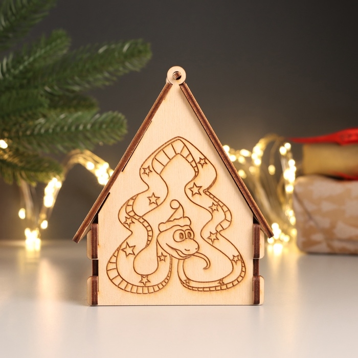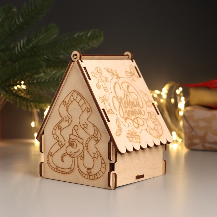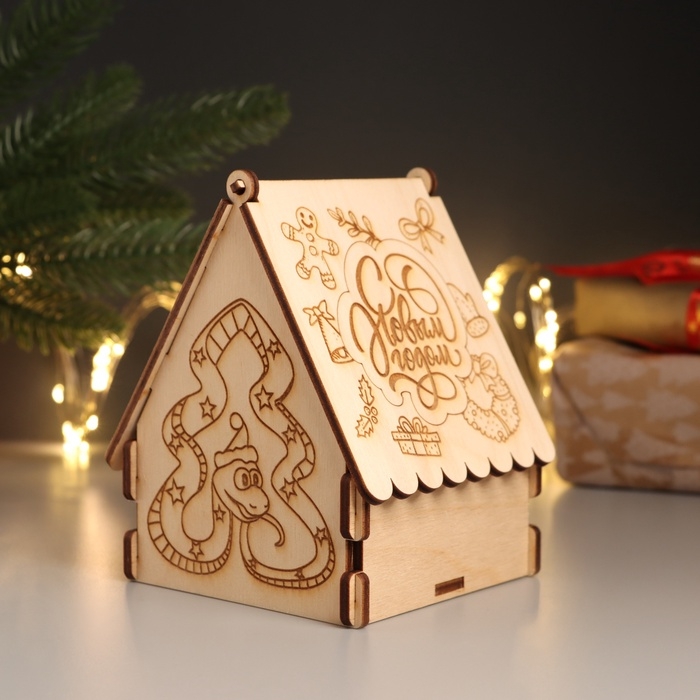Новогодняя шкатулка-домик "Змейка ёлка" 12х10х13,5 см (набор 7 деталей)