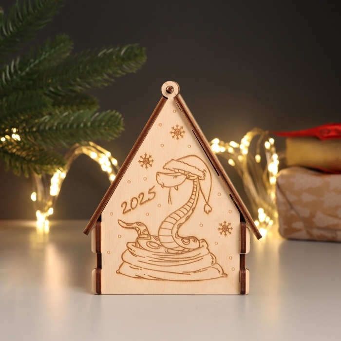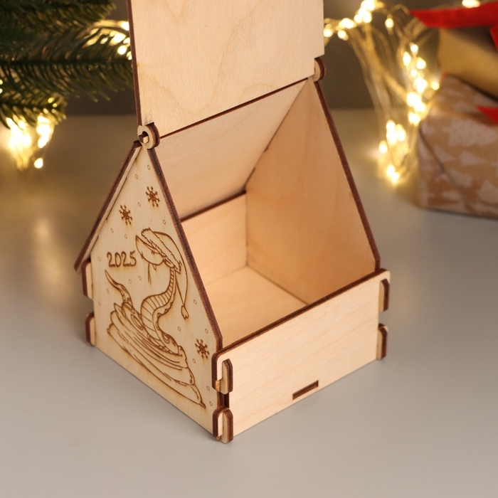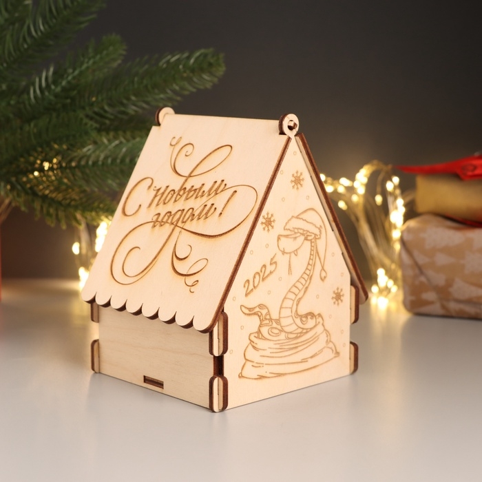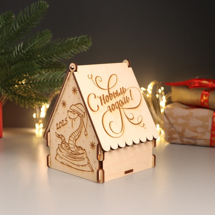 Новогодняя шкатулка-домик "Змейка в шапке" 12х10х13,5 см (набор 7 деталей)