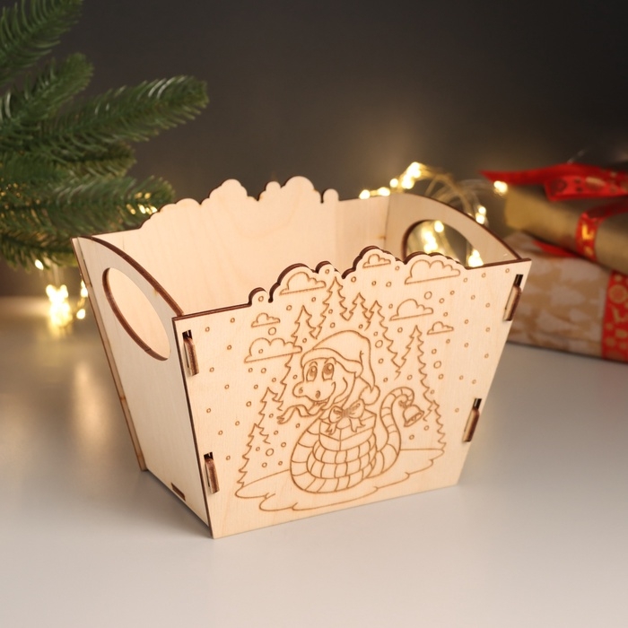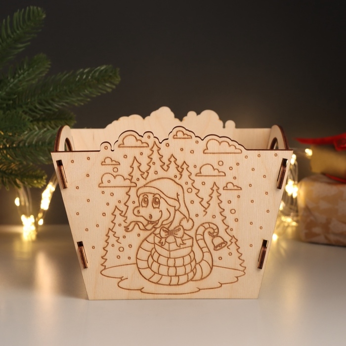 Новогодняя корзинка-шкатулка "Змейка с подарком" 18х12х14 см (набор 5 деталей)