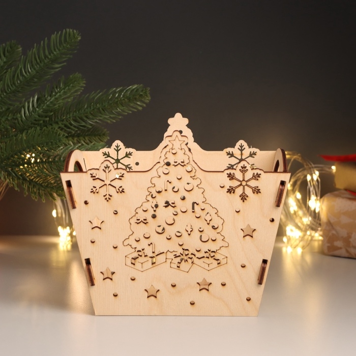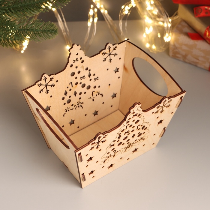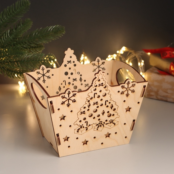 Новогодняя корзинка-шкатулка "Ёлка" 18х12х15 см (Новогодний набор 5 деталей)