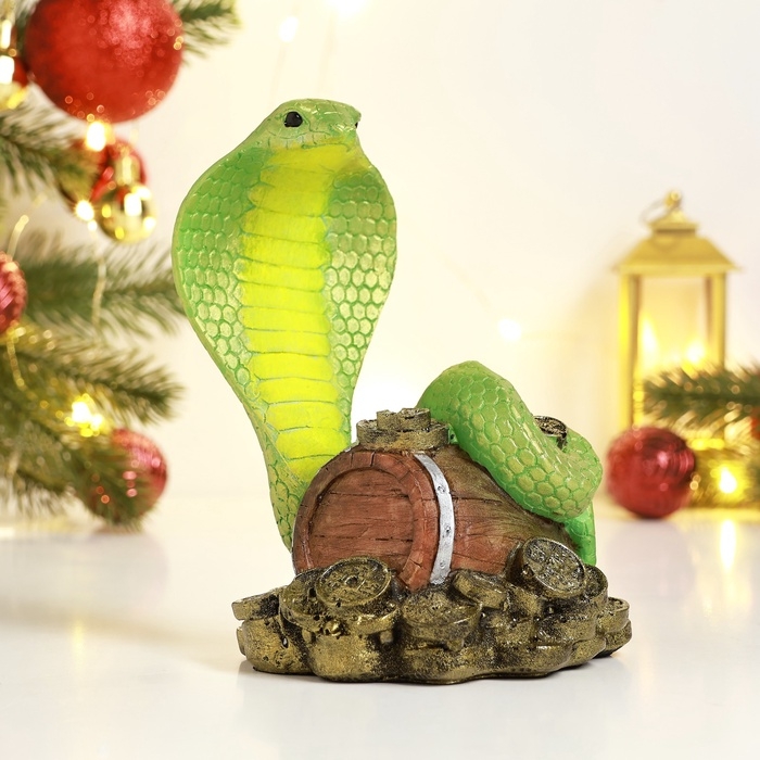 Новый год. Символ 2025. Копилка "Змея Кобра на монетах" 12х14х15см, цветная