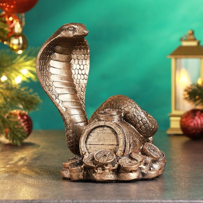 Новый год. Символ 2025. Копилка "Змея Кобра на монетах" 12х14х15см, бронза