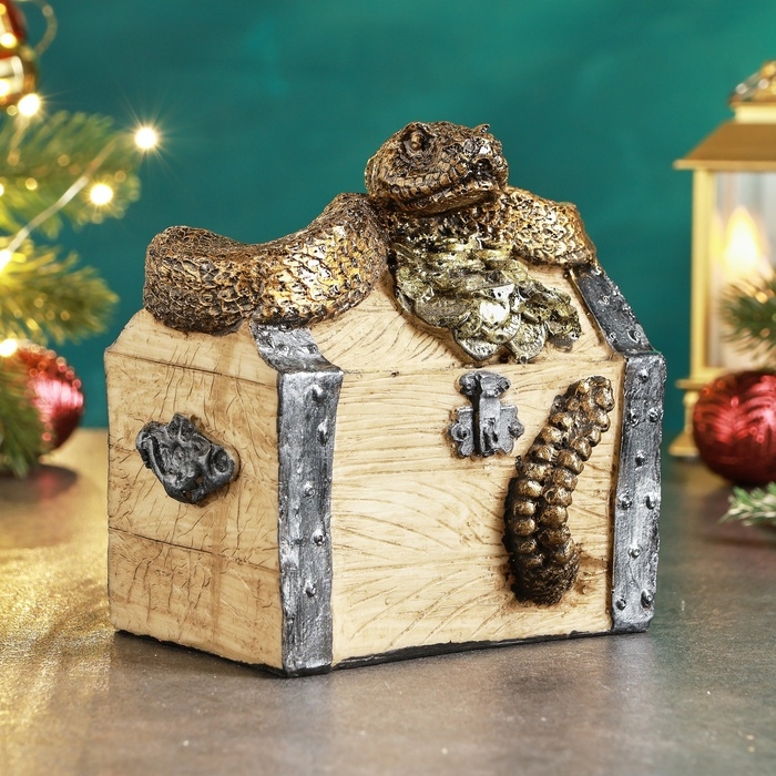 Новый год. Символ 2025. Копилка "Сундук со змеями" цветная