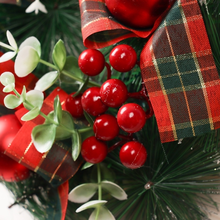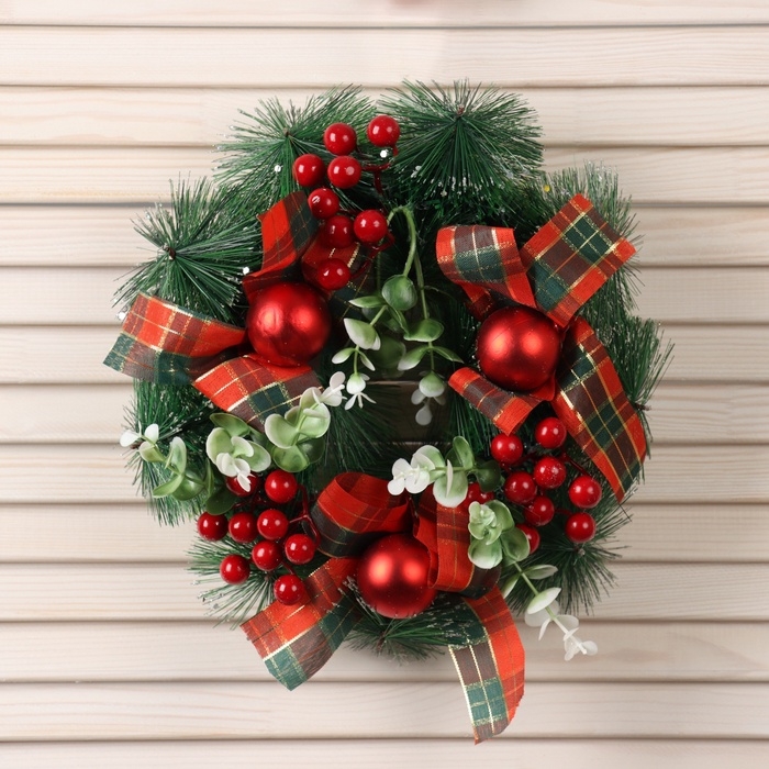 Венок новогодний d-24 см "Яркая сказка" зелень ягоды