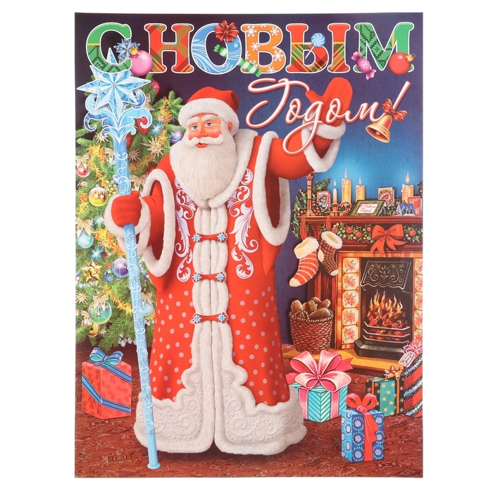 Плакат "С Новым Годом!" Дед Мороз, посох, 45 х 60 см