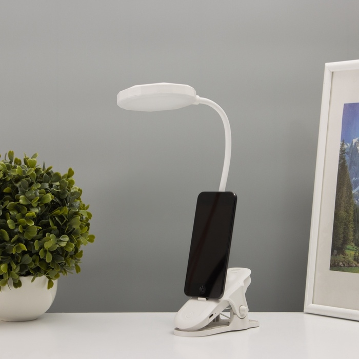 Светильник на прищепке с подставкой под телефон "Грань" 5Вт LED USB 2700-6500К белый