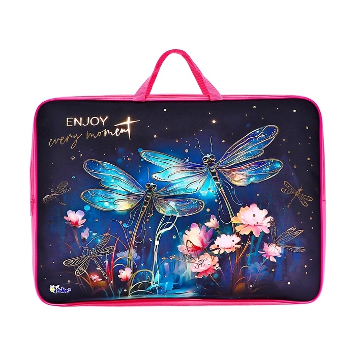 Папка А3 с ручками текстиль 75 мм 475*345 мм ПМД 3-22-4 дев Стрекозы (тесьма) фольга 72961