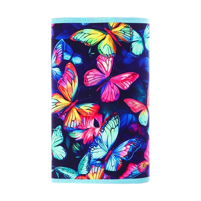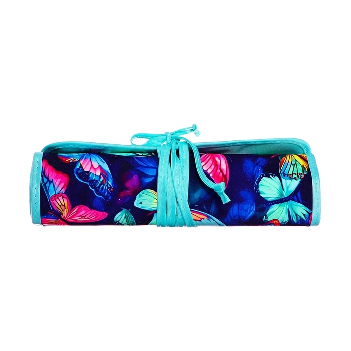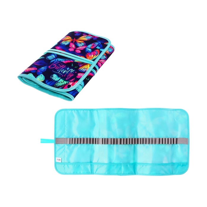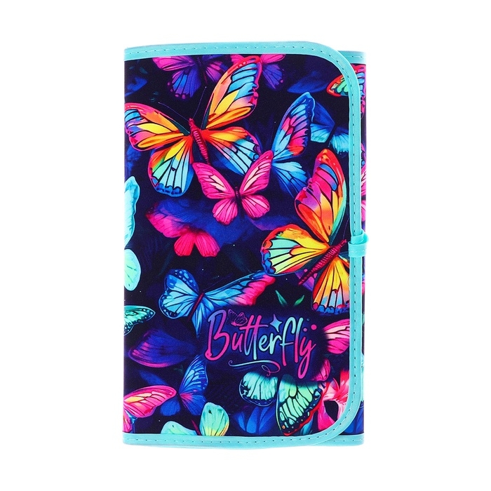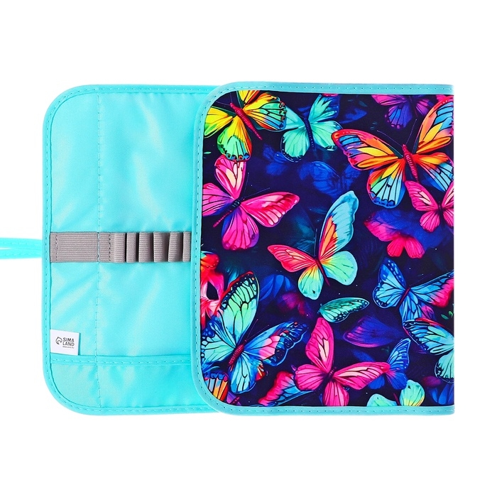Пенал мягкий скрутка , 220х460 мм , Calligrata "Бабочки", на шнуровке, на 37 предметов, неон