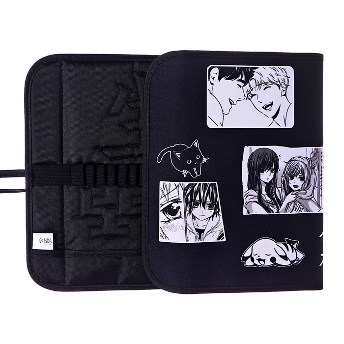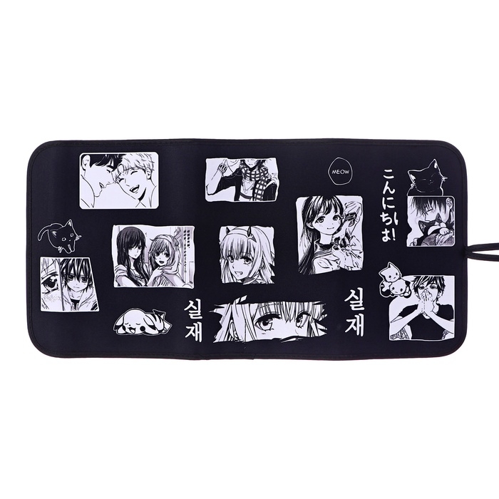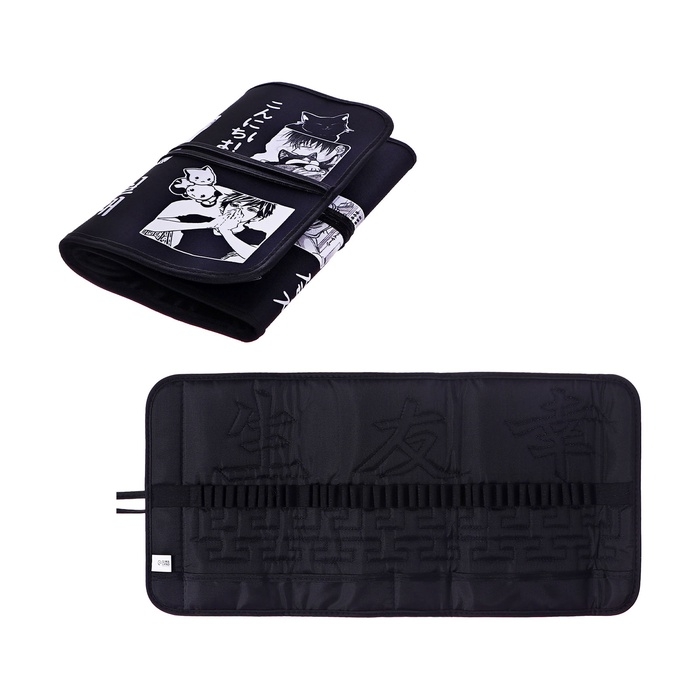 Пенал мягкий скрутка , 220х460 мм , Calligrata, вышывка "Аниме", на шнуровке, на 37 предметов