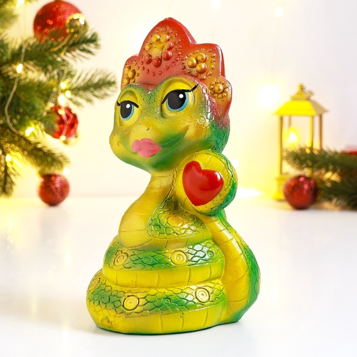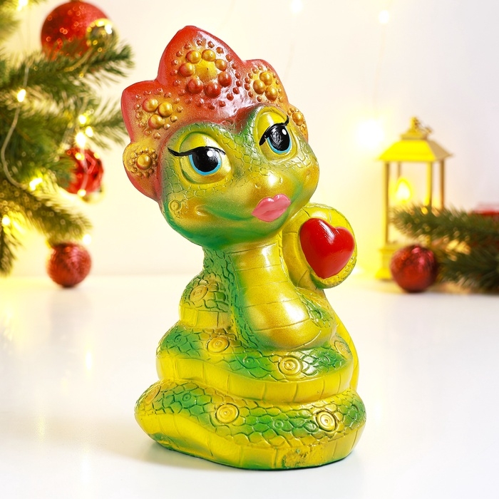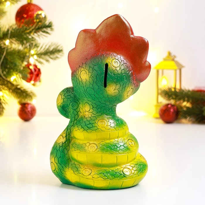 Новый год. Символ 2025. Копилка "Змея в кокошнике" зеленый красный, 23см