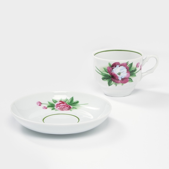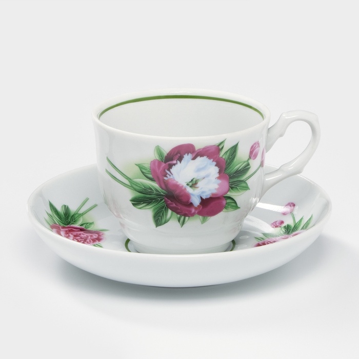 Чайная пара «Пион», 250 мл, блюдце d=15 см, фарфор