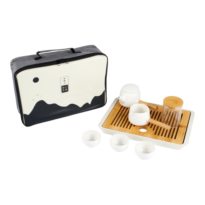 Набор для чайной церемонии поможет создать атмосферу уюта и гармонии, а также насладиться вкусом и ароматом настоящего чая. Набор также может использоваться для обучения искусству чаепития. Чайный набор складывается в удобную сумку для хранения, что позволяет брать его в путешествие и наслаждаться ароматами чая в любом удобном и комфортном для вас месте. В горах или на пикнике, с коллегами или дома среди близких людей, чайный набор будет прекрасным выбором для распития любимого чая. Этот чайный сервиз идеально подойдет и для тех, кто хочет насладиться традиционным чаепитием. Добавьте особой атмосферы в Ваш чайный ритуал!