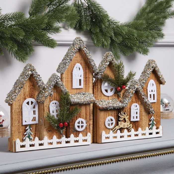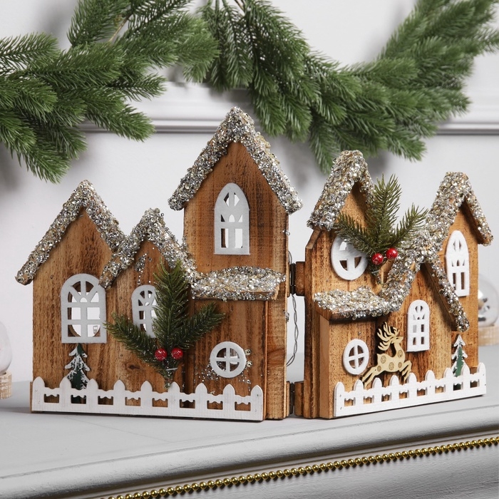 Фигура деревянная "Изба", 46х26х13 см, 10 LED, батарейки AAx2 (не в комплекте), свечение теплое белое