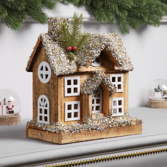 Фигура деревянная "Изба", 26х23х12 см, 5 LED, батарейки AAx2 (не в комплекте), свечение теплое белое